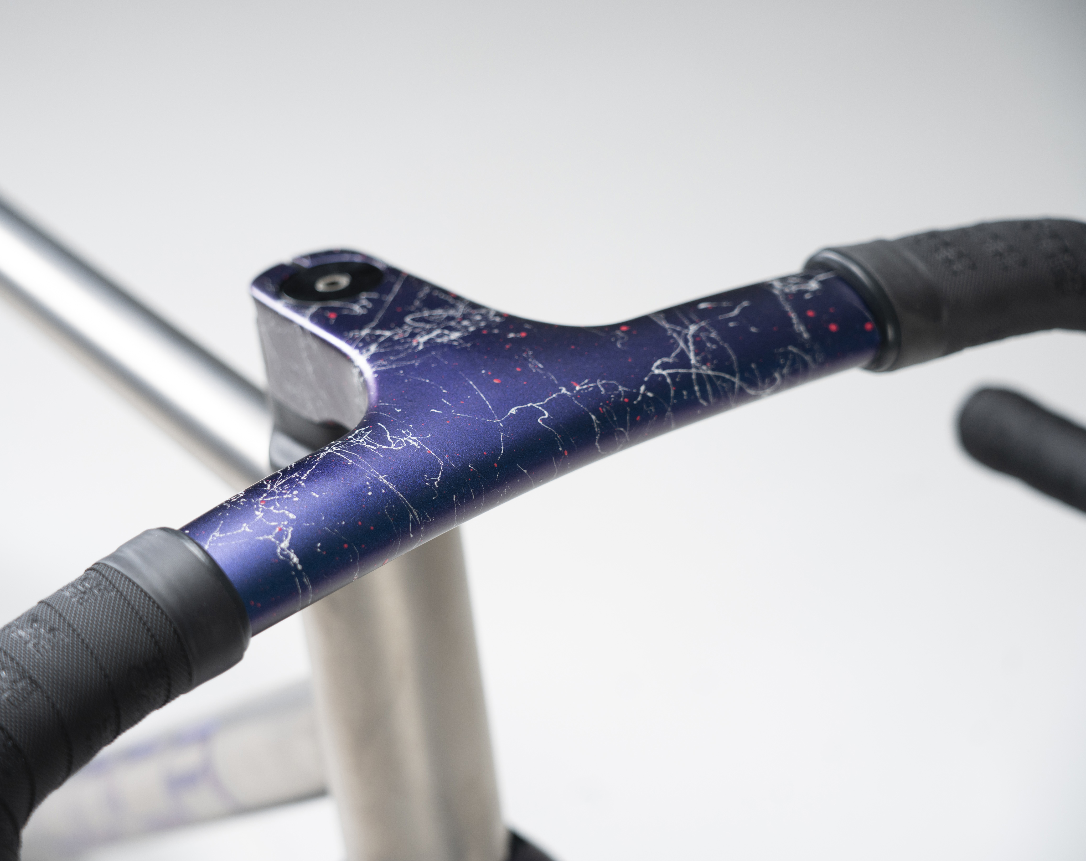Nach dem Glasperlenstrahlen wird der Titanrahmen poliert und die Logos eloxiert. So erhalten sie eine intensive Farbe, die einen klaren Kontrast zur satinierten Oberfläche bildet. Das Finish überzeugt durch seine Haltbarkeit und Widerstandsfähigkeit gegen mechanische Beschädigungen.