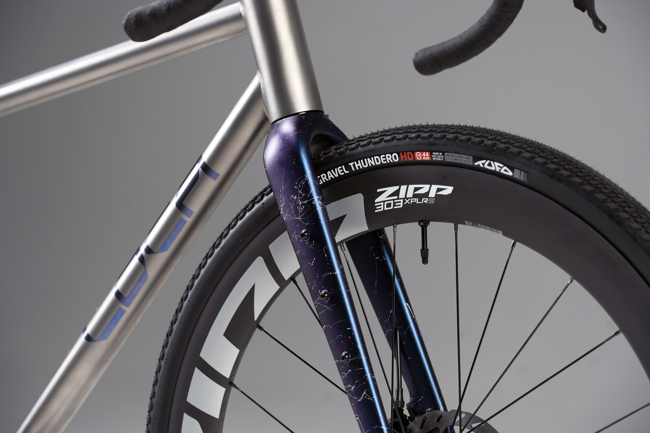 Auch die Reifen sind entscheidend. Wir haben den tschechischen Tufo Thundero HD gewählt – einen der schnellsten Gravelreifen auf dem Markt, mit verstärkter Karkasse, die Schnittschäden hervorragend widersteht.