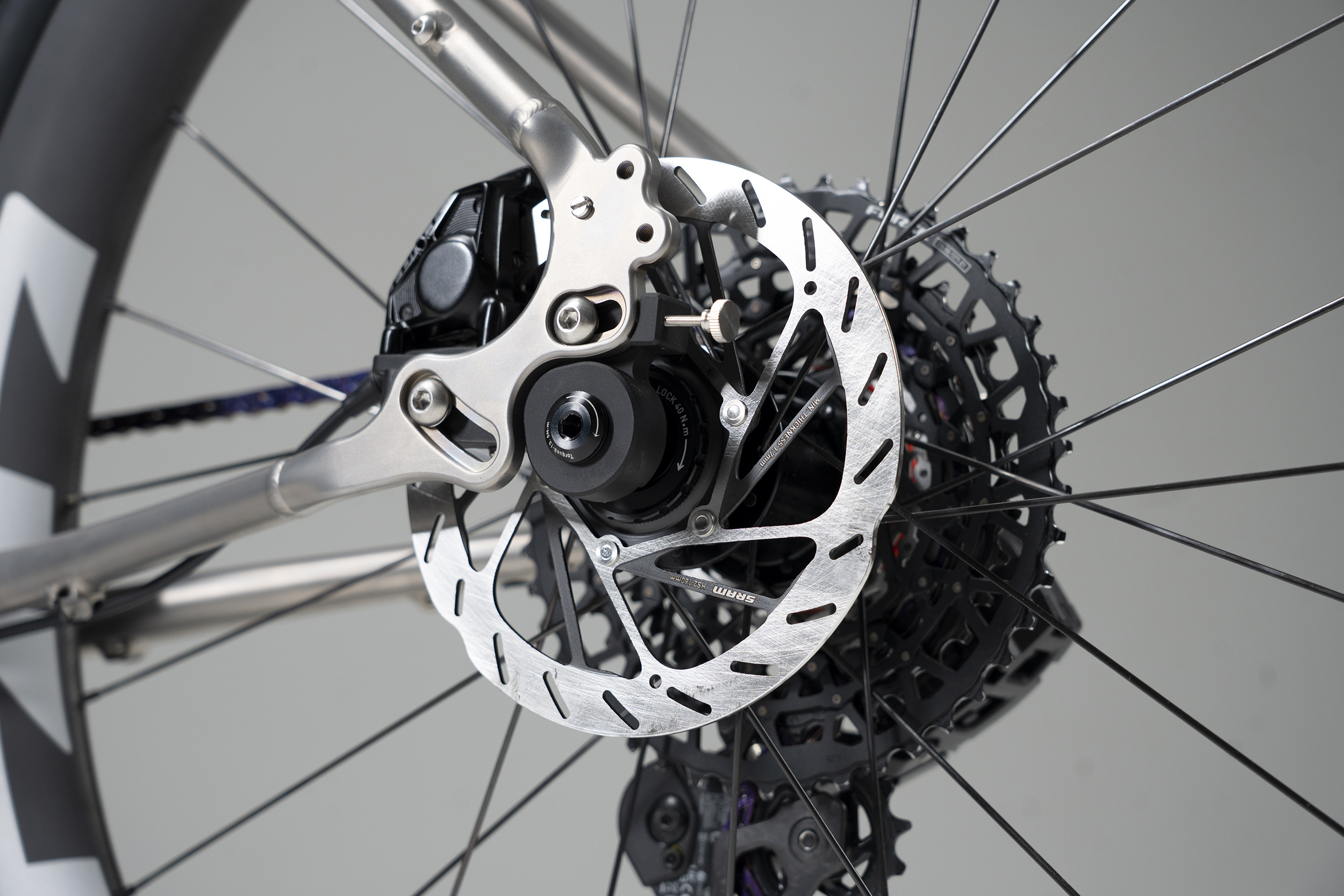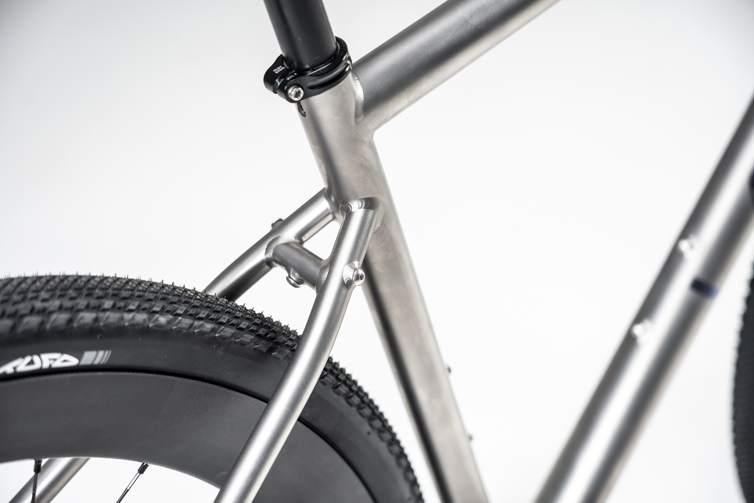 Die Geometrie unserer Titanrahmen bietet Platz für Reifen bis 47 mm Breite. Ein hoher Stack und verschiebbare Ausfallenden verändern den Charakter des Bikes – von einem schnellen, agilen Gravelbike für entspannte Schotterstraßen
